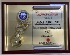Dana Air has been honored by the Women in Aviation for celebrating 15 years in Nigeria’s Aviation Industry at the Annual Conference of Women in Aviation Nigeria Chapter held recently in Kano.