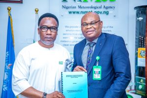 The MoU covers data sharing between NiMet and Greenfield University, staff development, and establishment of an automatic weather observatory within the University.